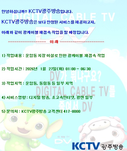 Æí¼ºÇ¥| Á¦¸ñ | 2026³â 1¿ù 27ÀÏ ¿î¾ÏÀÚÀÌ ½Å±Ô ¾ÆÆÄÆ® ºÎ±Ù ±¤ÄÉÀ̺í ÀçÁ¢¼Ó ÀÛ¾÷ |